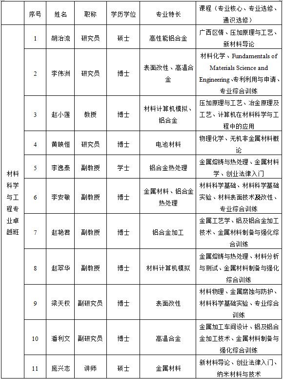 本材料科学与工程专业旨在培养德、智、体、美全面发展,适应我国战略性新兴的新材料产业和广西有色金属、钢铁、汽车、机械、水泥、陶瓷等千亿元产业发展需要,具备良好素质和科学知识基础,掌握材料科学与工程的基本理论和专业知识,具有创新精神和较强的实践能力,得到材料工程师基本训练,能在金属材料、无机非金属材料、冶金及相关材料领域从事生产运行、工程设计、技术开发、科学研究等工作的生产、管理一线的现代工程师。