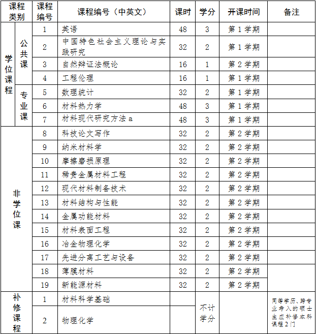 1.本专业领域硕士研究生工程硕士总学分不低于32学分,其中课程学习不少于24学分。公共学位课必修4门,7学分,专业学位课必修3门,8学分,非学位课选修5门,10学分,专业实践4学分(具有2年及以上企业工作经历的工程类硕士专业学位研究生专业实践时间不少于6个月,不具有2年企业工作经历的工程类硕士专业学位研究生专业实践时间不少于1年),论文选题1学分,参加相关学科学术活动5次以上得2学分,低于5次不得学分。
