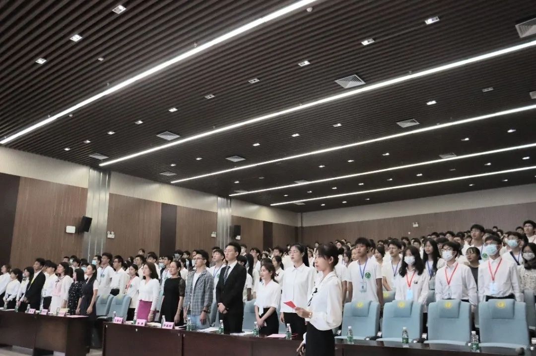 最后,学生会主席团成员覃彬烘带领全体团学组织成员宣誓,在全体成员合唱校歌后,我院团学组织新一届全体成员大会圆满结束。