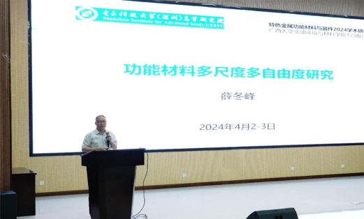 国家杰出青年科学基金获得者、国务院政府特殊津贴专家、中国稀土学会稀土晶体专委会主任、电子科技大学(深圳)高等研究院薛冬峰教授以《功能材料多尺度多自由度研究》为题,就材料体系多尺度水平上的结晶过程研究其功能行为与参会师生进行深入分析、探讨,激发了与会师生对功能晶体新材料发展方向的研究兴趣。