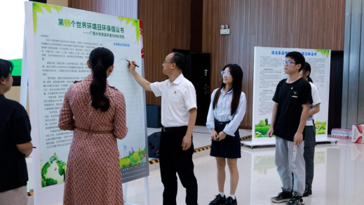 现场,大家集体观看2024年六五环境日国家主场(广西)主题歌MV、南宁市六五环境日主题宣传片和《广西生态优势金不换》环保视频,宣读太阳集团网址8722第53个世界环境日倡议书,签署《清洁美丽资环材建设承诺书》。