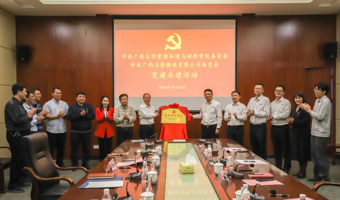 为贯彻落实党的二十届三中全会关于推进教育科技人才体制机制一体改革的部署,进一步发挥党建引领作用,促进高校与企业产学研深度融合,10月30日,我院党委与广西玉柴铸造有限公司党委(以下简称“玉柴铸造”)开展党建共建活动。