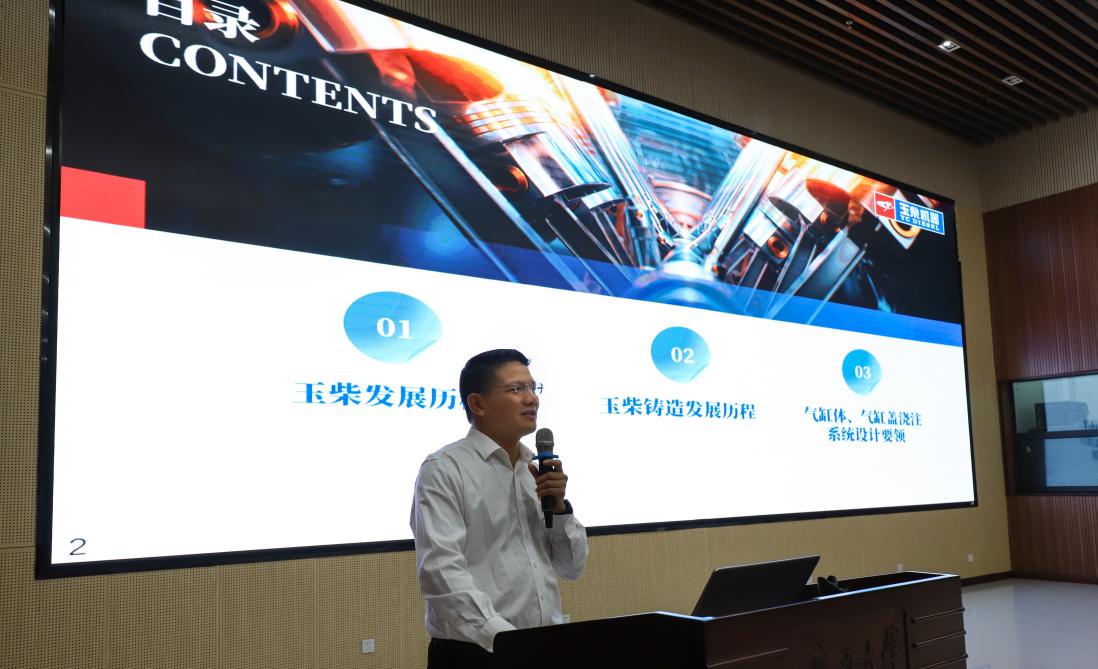 梁成振从玉柴铸造的发展历程切入,详细介绍玉柴发动机气缸体气缸盖浇注系统设计的工艺流程和设计要领,生动展现玉柴铸造的创业历程和创新能力。他结合自己扎根广西、服务国家战略发展的创业经历感受,鼓励同学要时刻心怀“国之大者”,发扬工匠精神,“肩负新质生产力发展的使命”,不断提高科研水平与专业技能,将个人前途命运融入服务社会的发展建设中,勇担时代之责、勇攀科技高峰。他欢迎优秀毕业生加入玉柴铸造,共谋发展,现场互动气氛热烈。