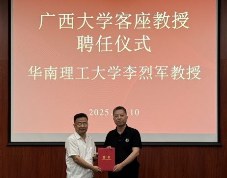 6月10日,冶金和材料权威专家、国务院政府特殊津贴获得者、华南理工大学教授李烈军受聘为我院及广西有色金属及特色材料加工重点实验室客座教授。聘任仪式在我院举行,院党委书记沈大强主持,院长邹炳锁教授代表学院及重点实验室为李烈军教授颁发聘书。