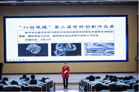 随后,学院党委副书记吴达慧老师详细介绍本次科技文化节的时间安排、活动内容、注意事项等。她希望同学们能够坚定从事学术研究的决心,利用好学校、学院完善的科研资源,积极主动参与科研科创项目,在实践中不断提升发现问题、思考问题、解决问题的能力。