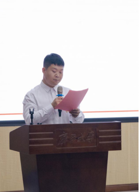 学院团委书记陈宏老师在讲话中对长期以来关心和支持我院研究生会工作的各级部门、校研究生会、兄弟学院研究生会表示衷心感谢。他充分肯定了我院第四届研究生会的工作,并对学院新一届研究会提出几点期望:一是坚定理想信念,继续发扬“勤恳朴诚,厚学致新”的校训精神与“进德修业,止于至善”的院训精神;二是练就过硬本领,专注学术研究与实践,聚焦学术探索与思维创新;三是牢记使命担当,明确自身定位,扎实履职尽责,为学院师生做好服务。