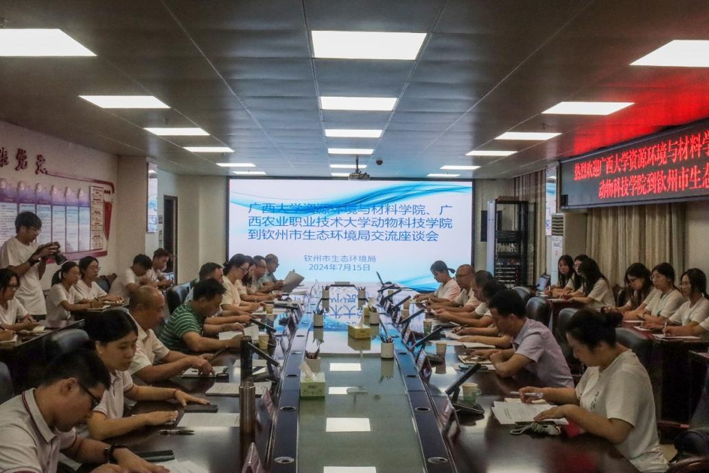 会上,钦州市生态环境局各部门代表还详细介绍了部门职能以及相关工作开展情况。在交流环节,实践团成员们踊跃参与,积极发言,就养殖业尾水处理、蓝色海湾整治项目、红树林生态恢复等问题与参会领导、工作人员进行深入交流探讨。现场气氛热烈,互动频繁。