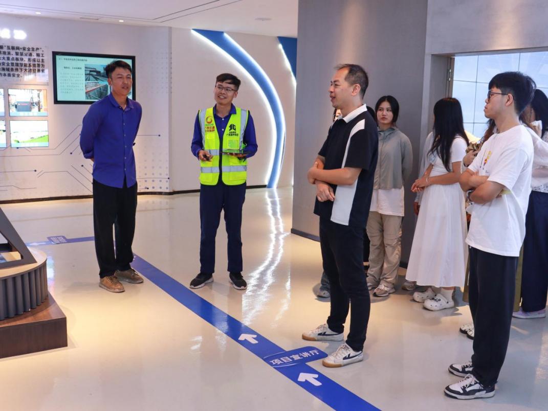 此外,实践团队前往位于康熙岭镇的渔光一体养殖尾水处理试点项目进行参观。通过实地参观走访,团队成员了解到该项目依据水域生态学原理,采用智能生物链治理技术,通过构建生态高效集约化的处理系统实现养殖尾水的达标排放,对生态治理技术和废水处理的相关工艺流程有了更深入的了解。