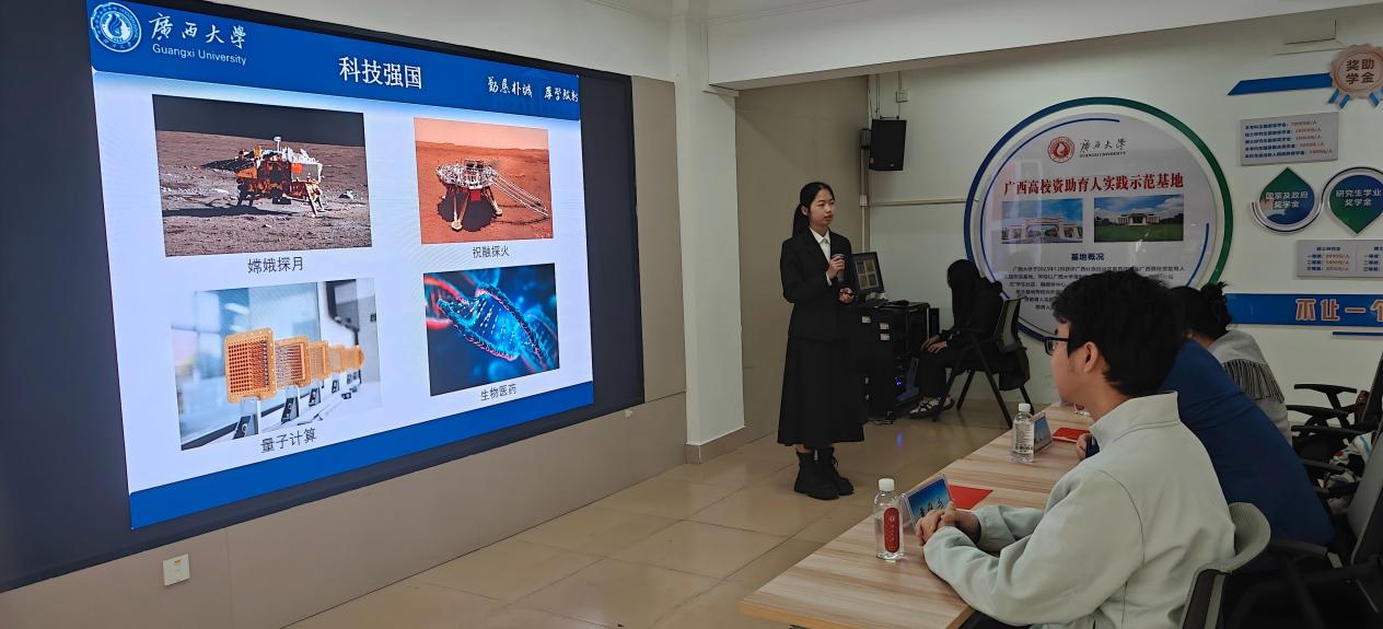 此次活动用“科学家精神”点燃了青年学子科技报国的信念之火。“科学家精神”激励着我校学子在学习、科研的道路上奋勇前行,用智慧和汗水,为建设壮美广西、为实现科技强国梦贡献青春力量!