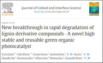 近期,我院刘焘教授课题组依托广西特有的丰富天然生物资源和具备可调控性能的有机半导体材料,成功开发出了一系列太阳能电池器件及新型光催化-吸附多功能材料。这一系列材料的创新设计和开发不仅能够高效利用太阳能资源,降解造纸废水中的木质素等有害物质,快速去除水体中的各种有机污染物,而且可用于高附加值清洁能源生产与二氧化碳催化转化,这一系列研究成果标志着在材料、能源和环境领域的重大突破,为解决全球能源、环境污染问题提供了重要的科学支持和技术手段。相关成果陆续发表在Aggregate、Surf.、Small、J. Colloid Interface Sci、J. Cleaner Prod.等多个国际权威期刊上发表。