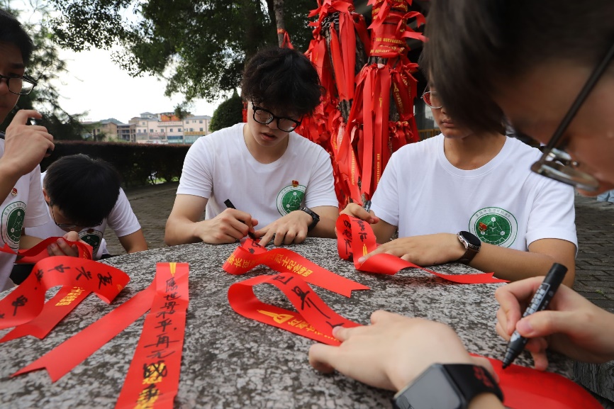 在兴安期间,宣讲团成员还先后参观了光华铺阻击战遗址、红军长征突破湘江纪念馆、红军长征突破湘江烈士纪念碑。在湘江战役红军烈士遗骸安放点和红军长征突破湘江烈士碑前,宣讲团成员专心聆听讲解,书写寄语,系红飘带,缅怀革命先烈。