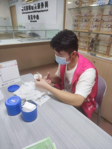 活动开展过程中,志愿者身着红马甲,始终以温暖的笑容,亲切的语气,体贴的引导对待每位需要帮助的对象。以热情饱满的精神为医生和护士分担工作,充分发扬“奉献、友爱、互助、进步”的志愿精神,我院新时代青年党员能吃苦、肯奋斗、勇于担当、真诚奉献的形象得到患者与医护人员交口称赞。